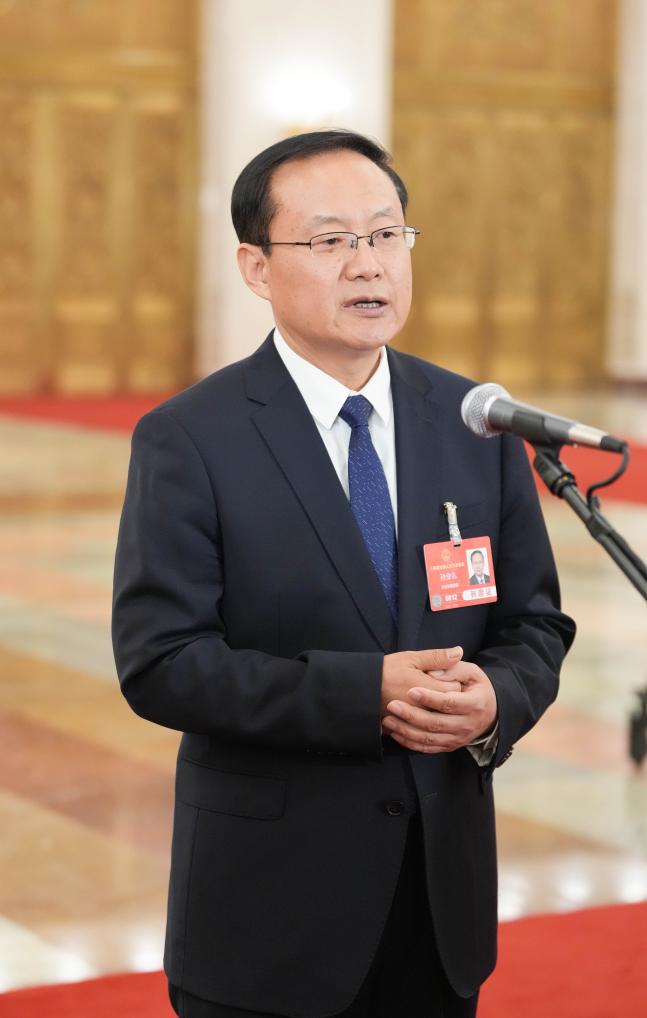 3月11日,第十四届全国人民代表大会第三次会议第三场“部长通道”集中采访活动在北京人民大会堂举行。这是文化和旅游部部长孙业礼接受媒体采访。新华社记者 ?;浪?摄