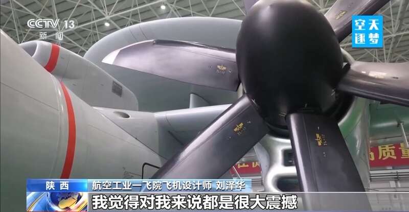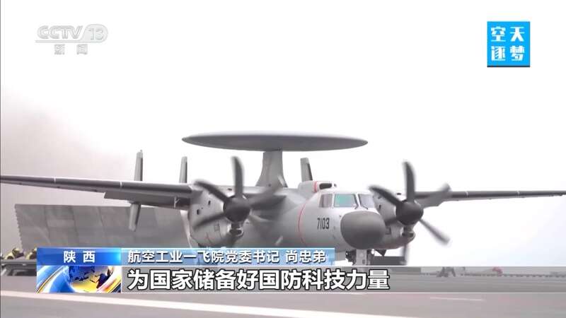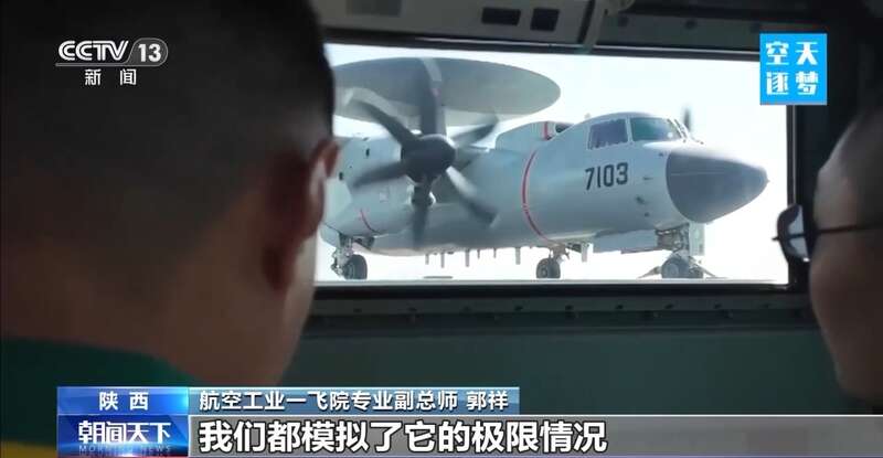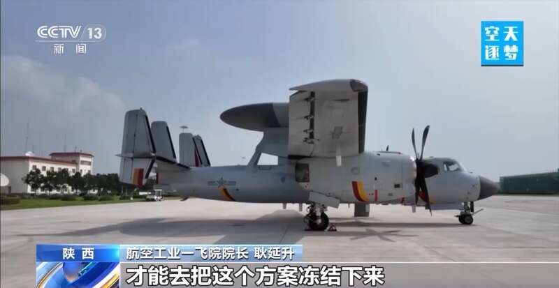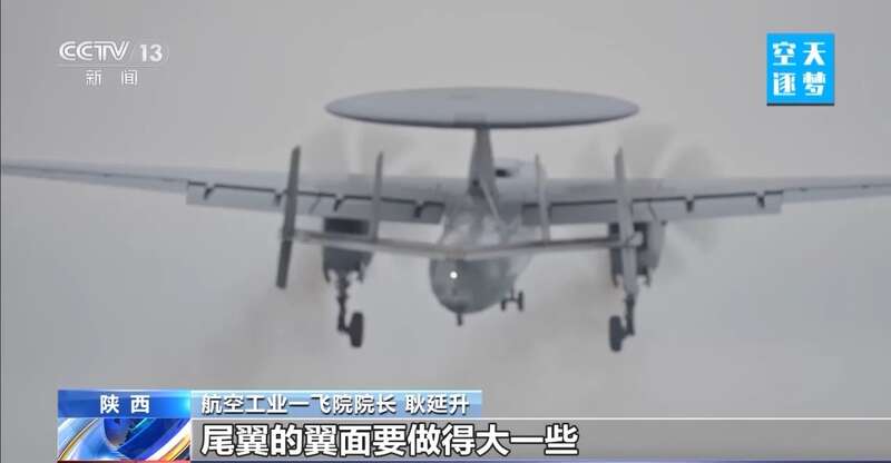 航空工业一飞院院长 耿延升:它有一个大大的圆盘,是预警天线的天线罩,我们要达到比较大的探测距离,预警探测的天线正面尺寸做得比较大,这么一个大的圆盘在这个小吨位量级的飞机上已经做到了极限,对飞机重心的限制,对飞机气动的限制,对飞机操纵的限制,都是上限。