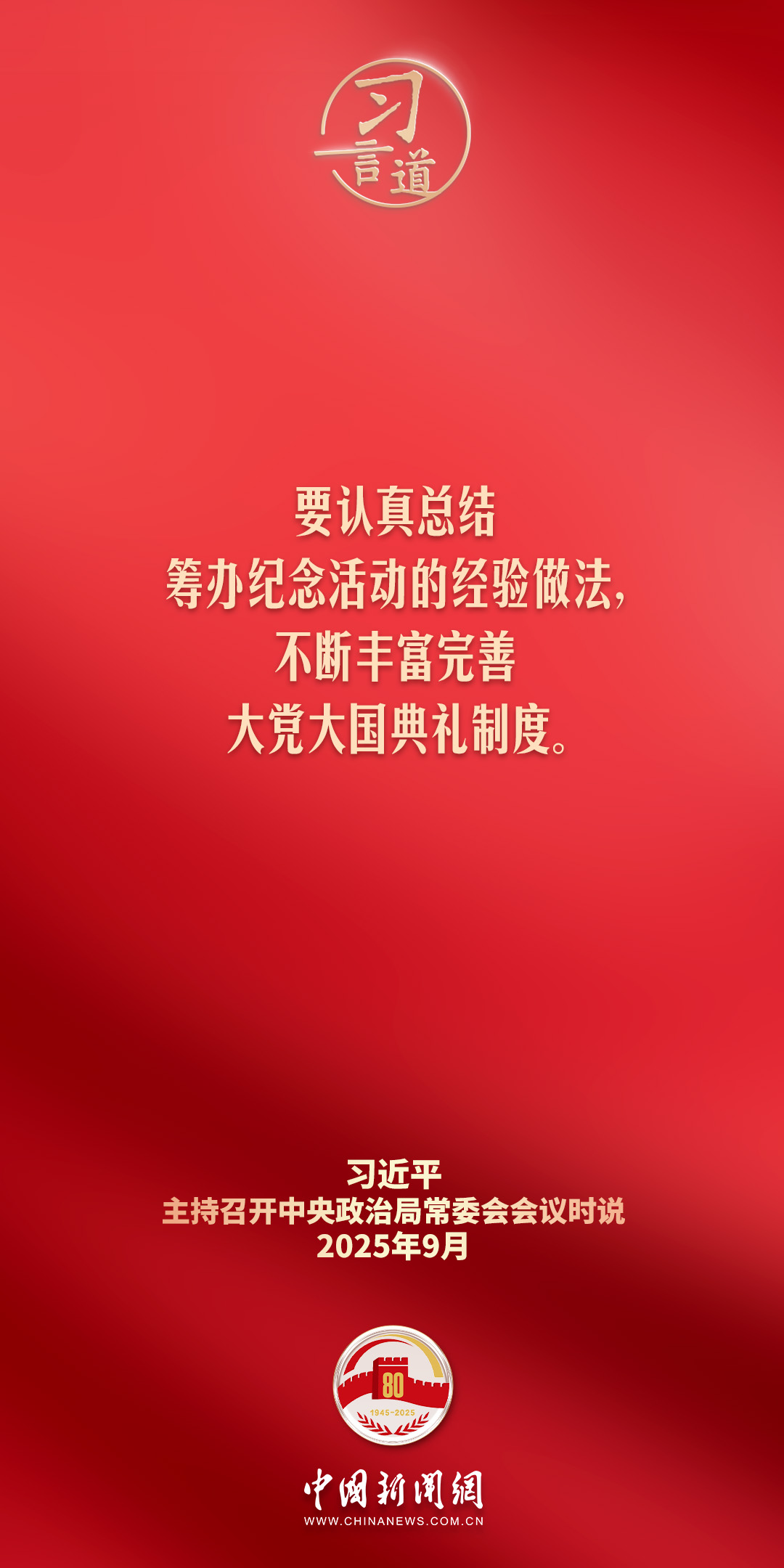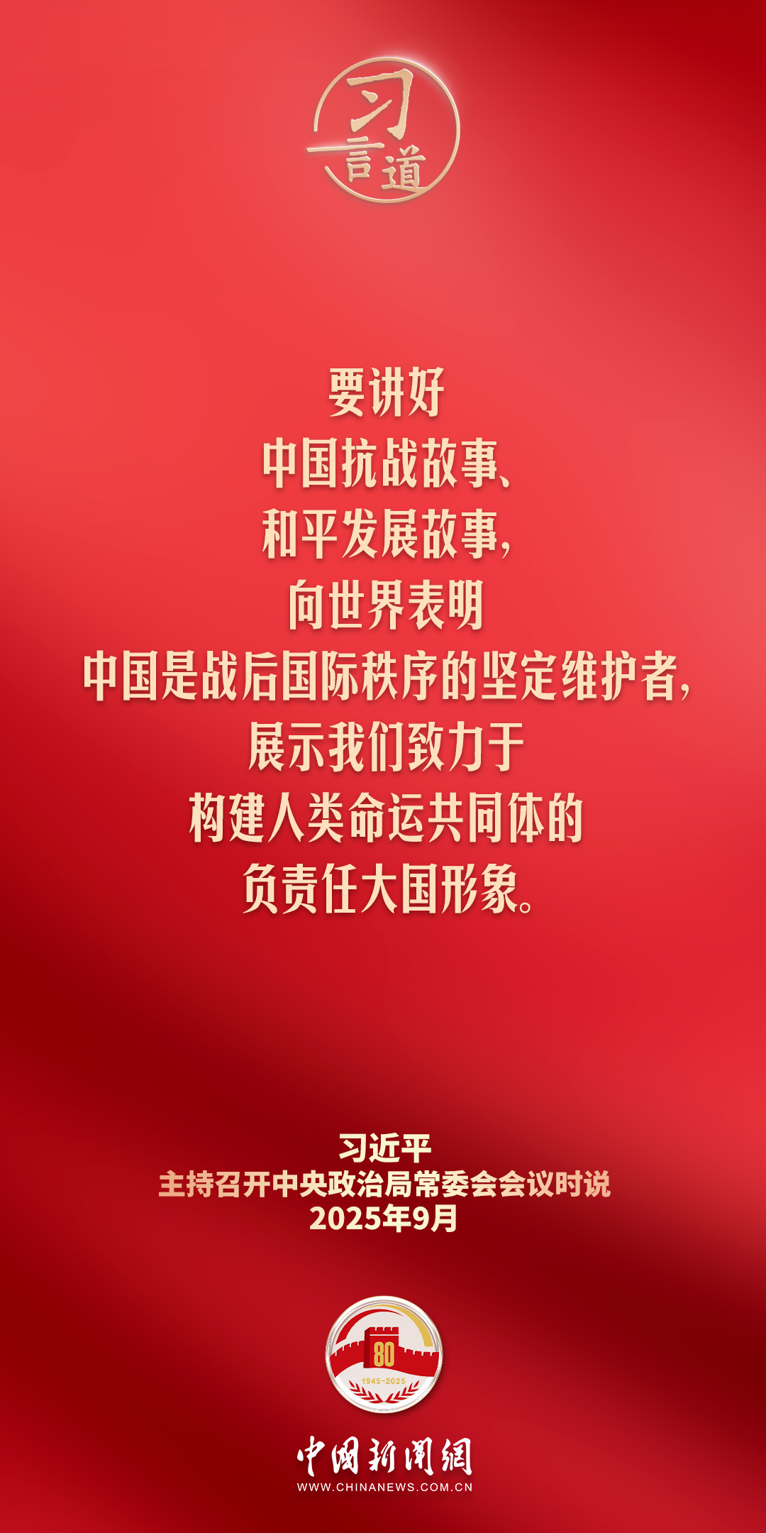 中国人民抗日战争暨世界反法西斯战争胜利80周年纪念活动总结会议17日举行,中共中央总书记、国家主席、中央军委主席习近平在人民大会堂亲切接见纪念活动筹办工作各方面代表。日前,习近平主持召开中央政治局常委会会议,专门听取纪念活动总结报告并发表重要讲话,习近平指出——